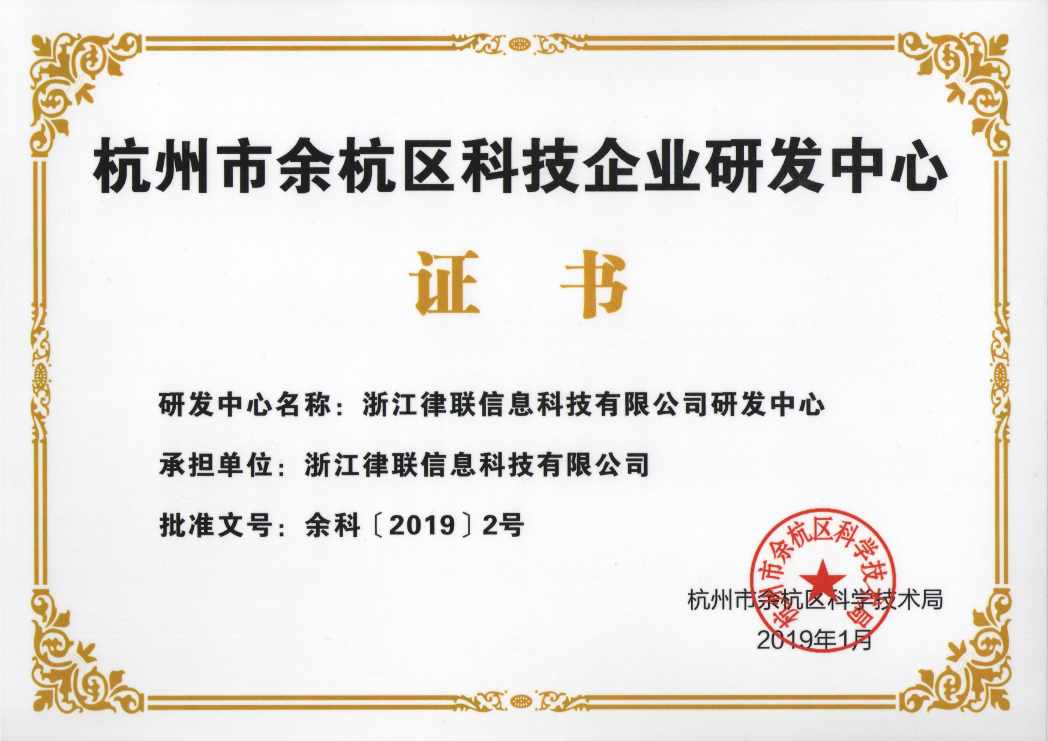 為深入實施創新驅動發展戰略,加強余杭區科技企業研發中心建設與管理,進一步增強企業自主創新能力和市場競爭能力,加快推動產業轉型升級,根據《余杭區科技企業研發中心認定辦法》(余科【2019】2號)文件精神,經評審,認定浙江律聯信息科技有限公司研發中心為余杭區科技企業研發中心。