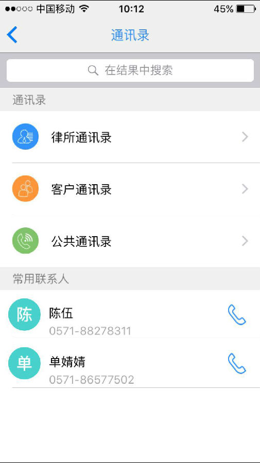 打開e律師APP進(jìn)入通訊錄