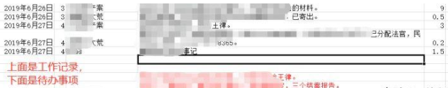 所謂工作記錄表,即律師對(duì)自己每日開(kāi)展的不同工作內(nèi)容和耗費(fèi)時(shí)間的記錄。